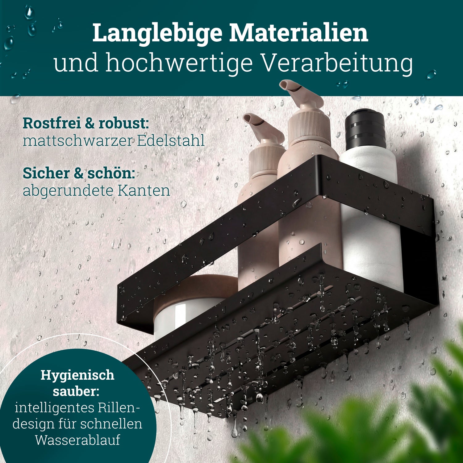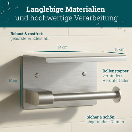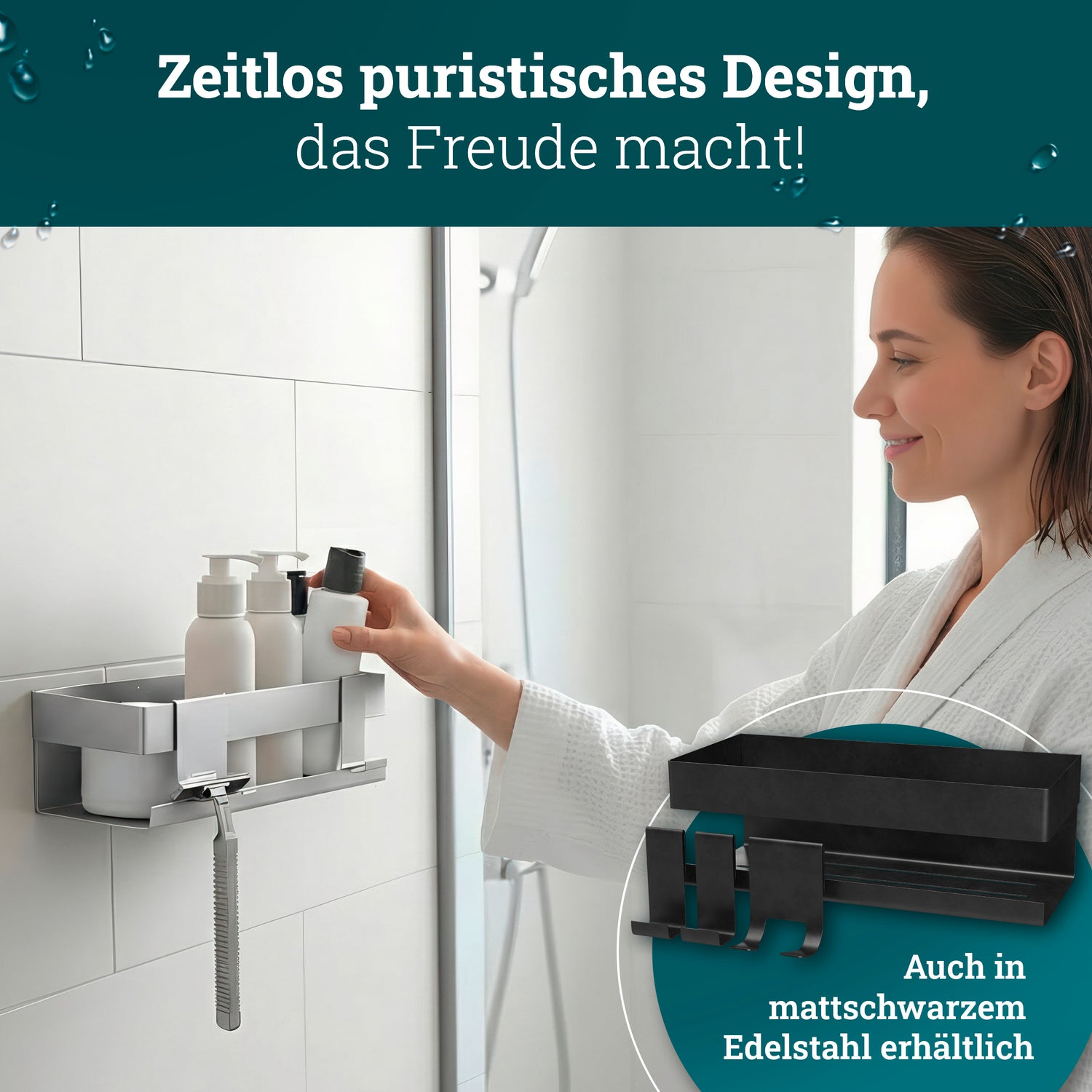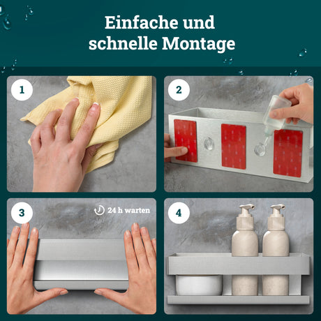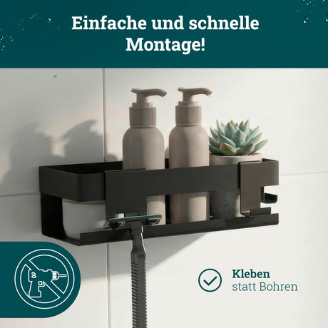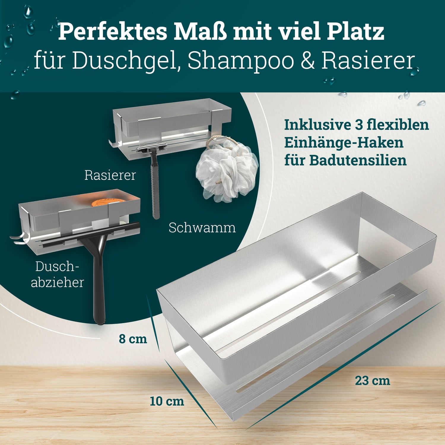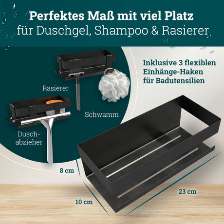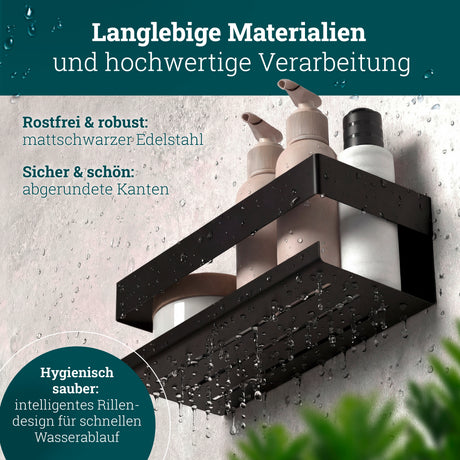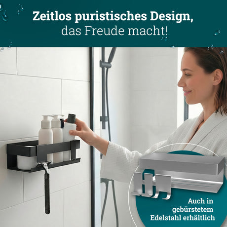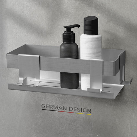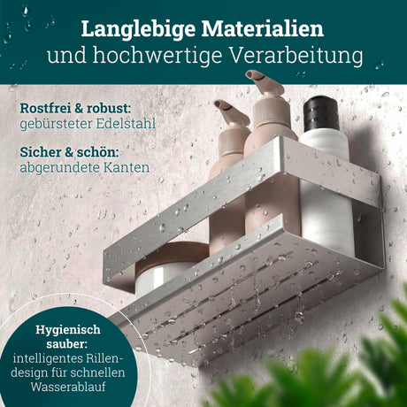 husman Duschablage ohne Bohren | Edelstahl mit Ablaufrillen & 3 Haken | Kleben statt Bohren | Duschkorb Wandregal Duschregal Badregal Deko Badezimmer Organizer Regal für Bad & Küche - Edelstahl gebürstet ist auf Lager und wird versandt, sobald es wieder verfügbar ist